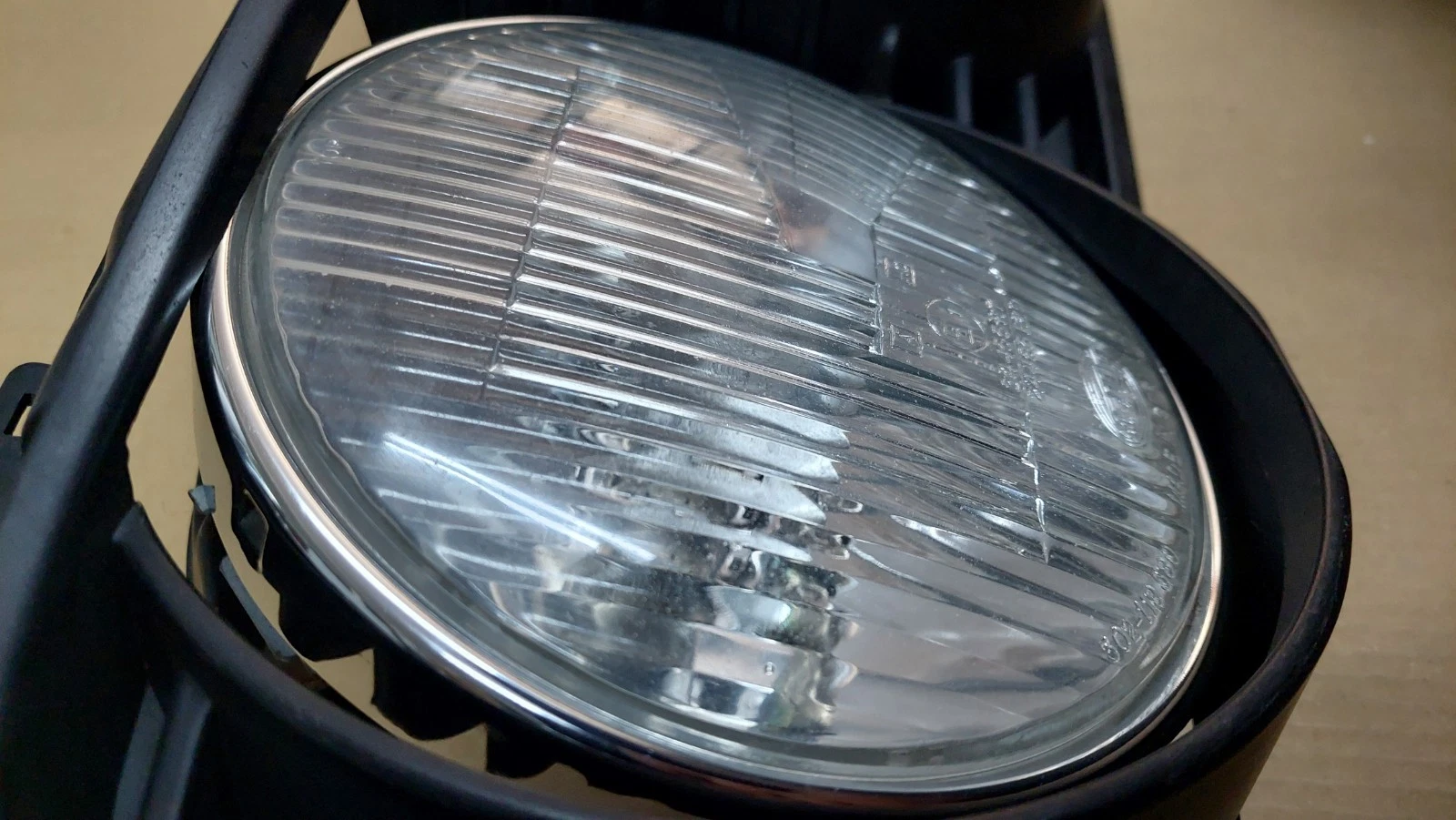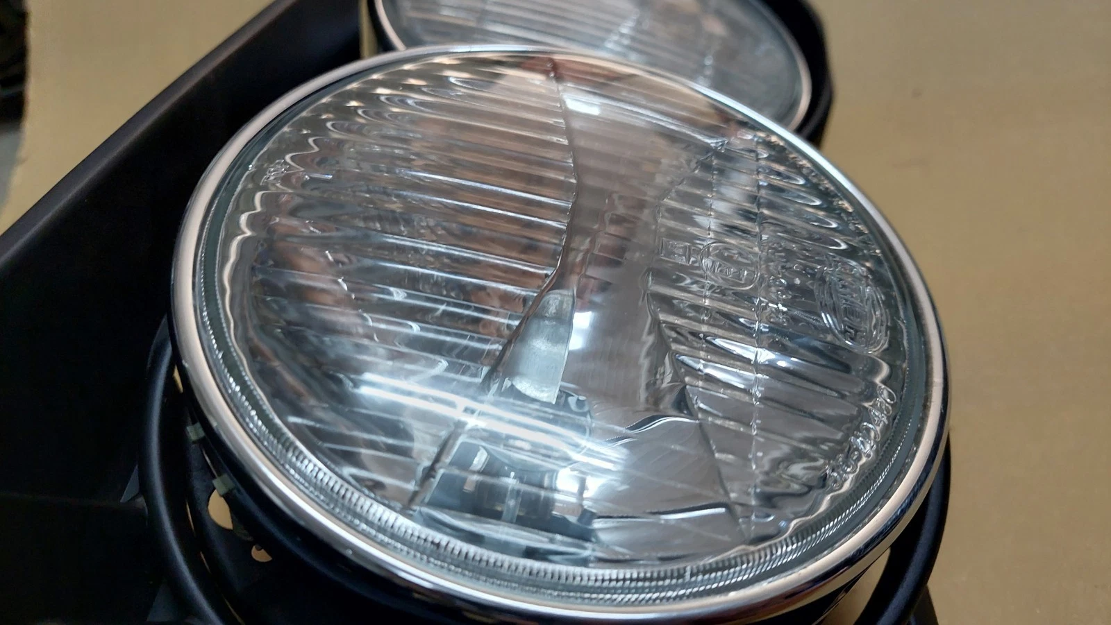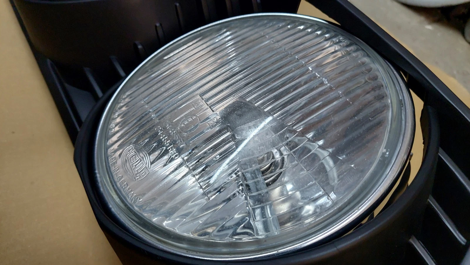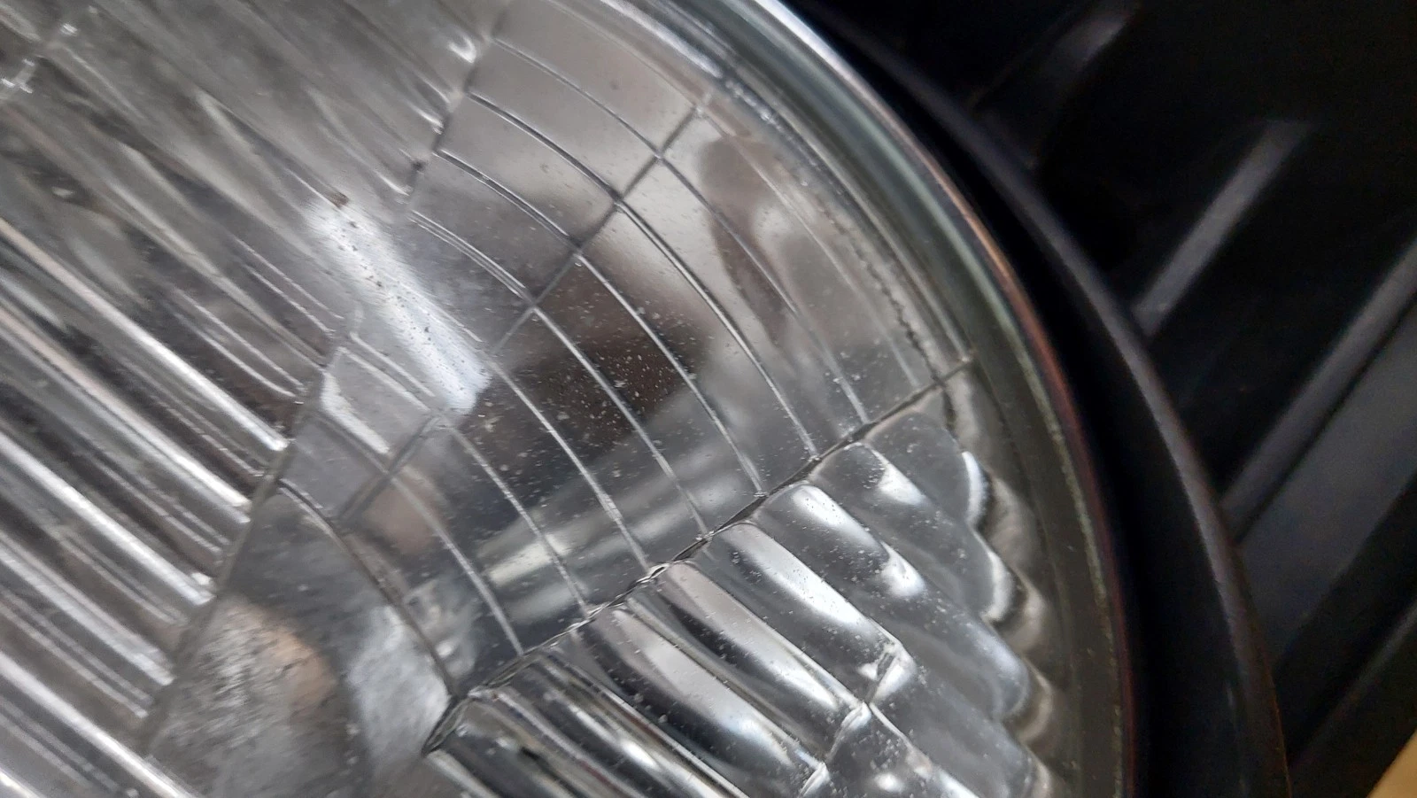 Lens at low beams have normal slight signs from road use and reflector at right side has slight wear